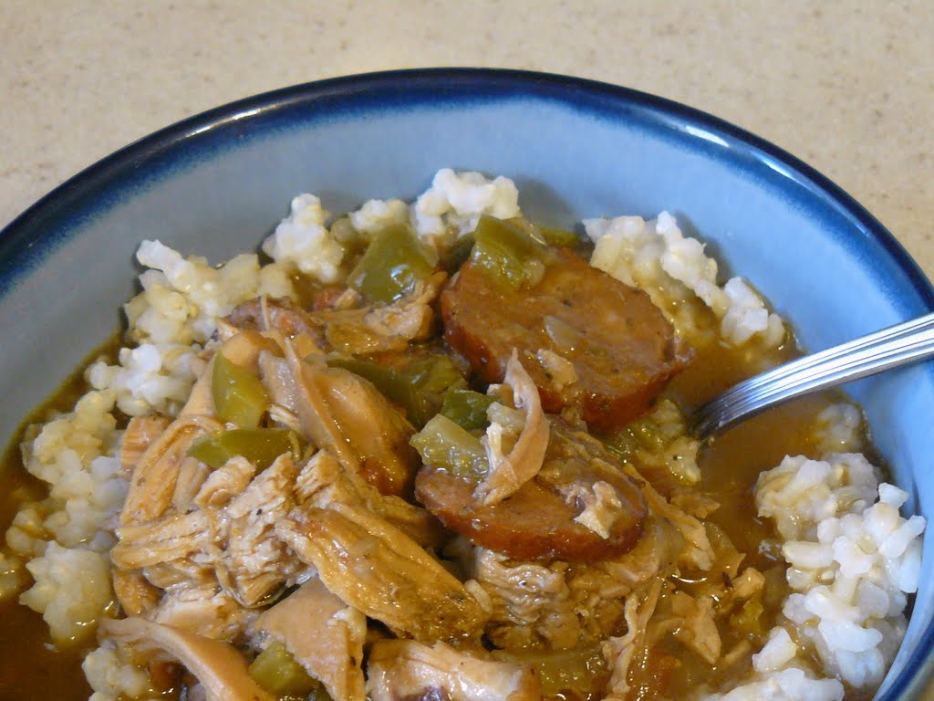It was the most exquisite form of torture. Riding in a car for half an hour with the pot of bubbling hot Gumbo sitting in my lap was almost more than I could handle as we went on our merry way to Game Night. If it hadn't been so very hot I'd have been even more tempted by the intoxicating fragrance to start drinking it up right there in the car. The general consensus seemed to be that it was delicious, with a caveat from a few who thought that it was a tad too spicy for them. Next time, and oh, there will definitely be a next time, I'm not too proud to admit when I was wrong! Next time I will ease back on the cayenne, maybe add a little sweet sausage along with the spicy, and serve it with Tabasco Sauce at the table for anyone who wants to kick up the heat.
